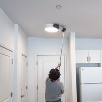 Remove grease and dust from the top of the cabinets, and properly clean the facades and sides. Clean and buff appliance exteriors. Wipe light fixtures and bulbs. Clean doorframes, switches, and outlets.